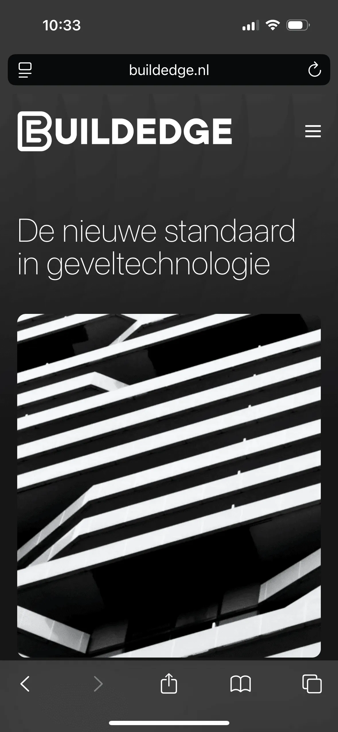 Een high-end visueel ontwerp, gecombineerd met een heldere structuur en subtiele animaties, brengt het innovatieve karakter van BuildEdge digitaal tot leven.