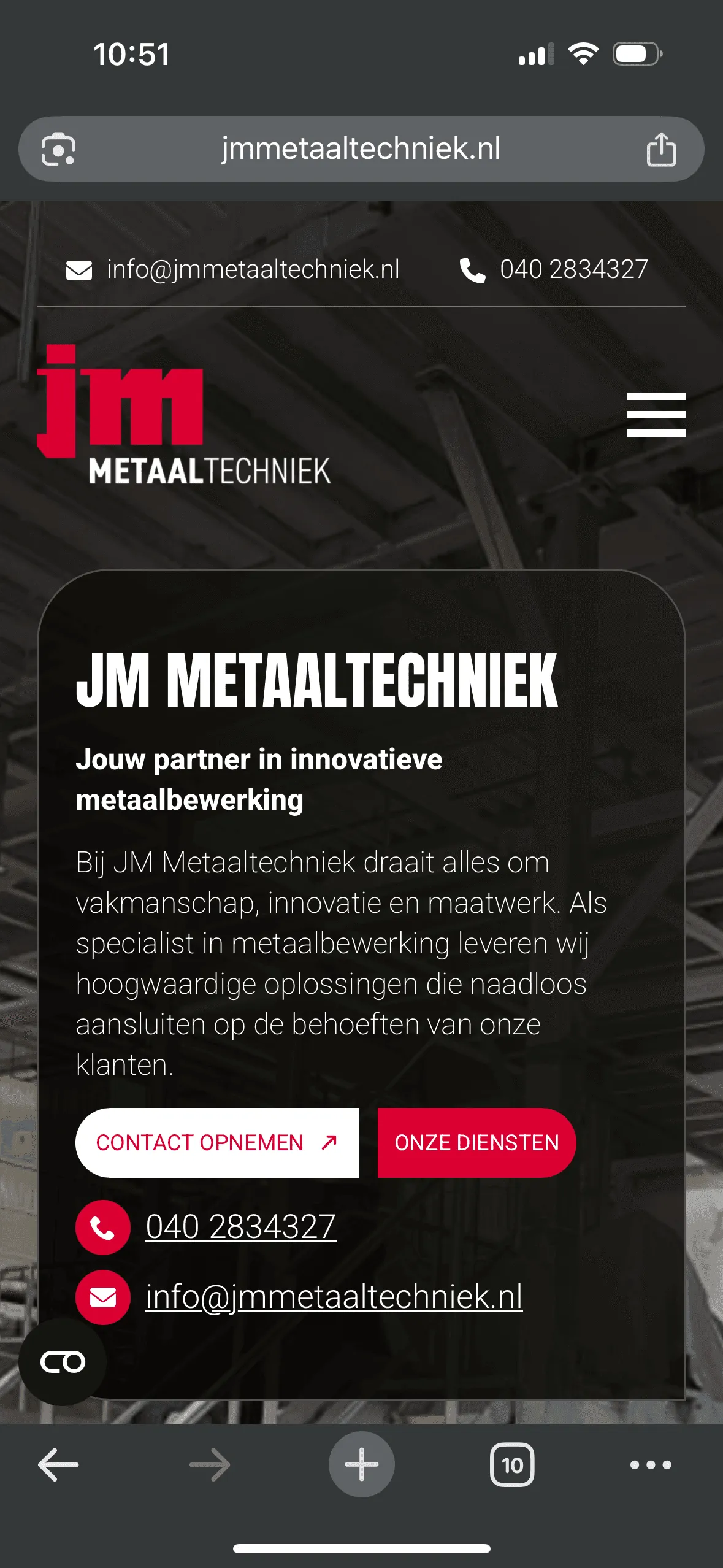 We realiseerden een moderne WordPress-website die de diverse diensten van JM Metaaltechniek overzichtelijk weergeeft. De site benadrukt hun vakmanschap, innovatie en maatwerk, met duidelijke call-to-actions en een gebruiksvriendelijke navigatie.