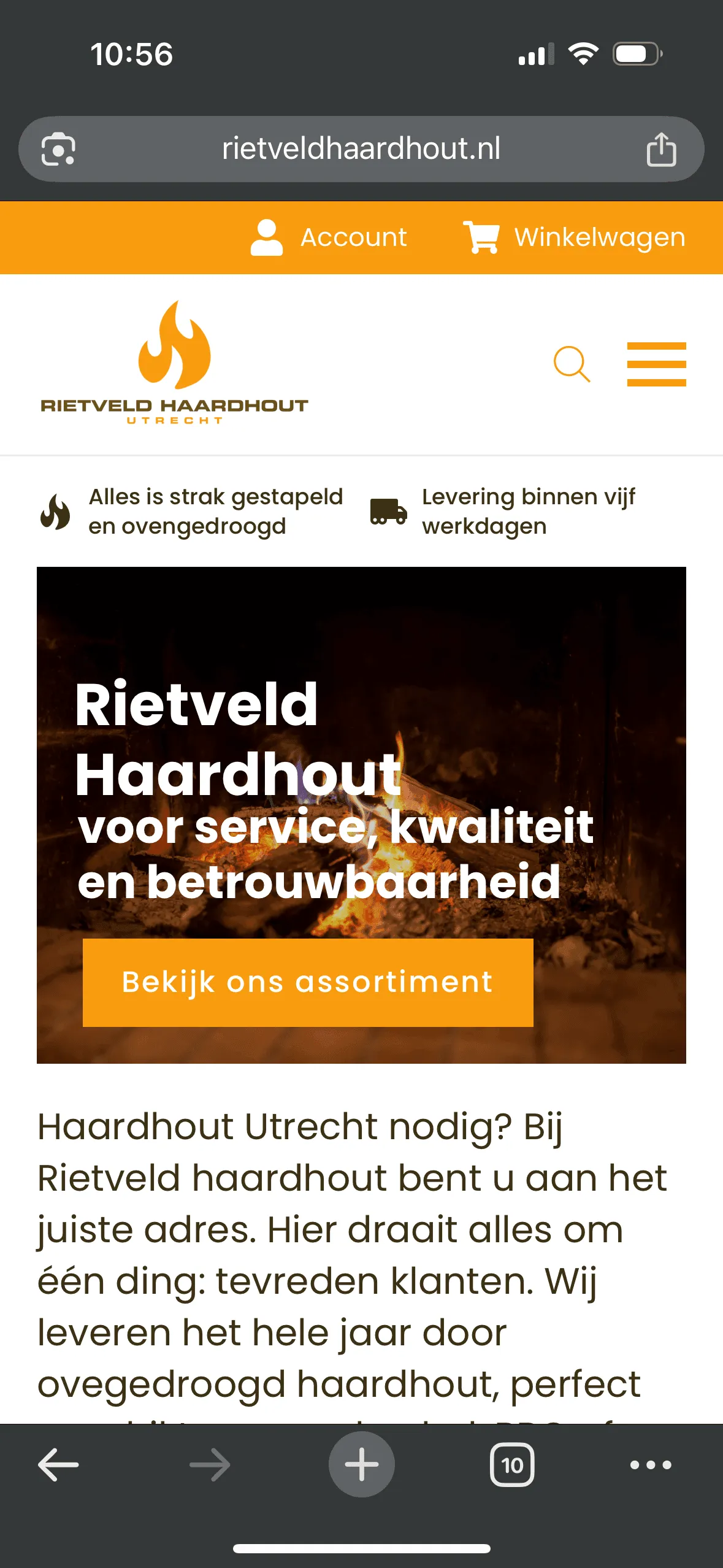 Ontwikkel een eenvoudige maar overtuigende website voor Rietveld Haardhout waarin hun expertise in droog, hoogwaardig haardhout voor particulieren en bedrijven in Utrecht duidelijk naar voren komt — met focus op productinformatie, bestelgemak en lokale levering.