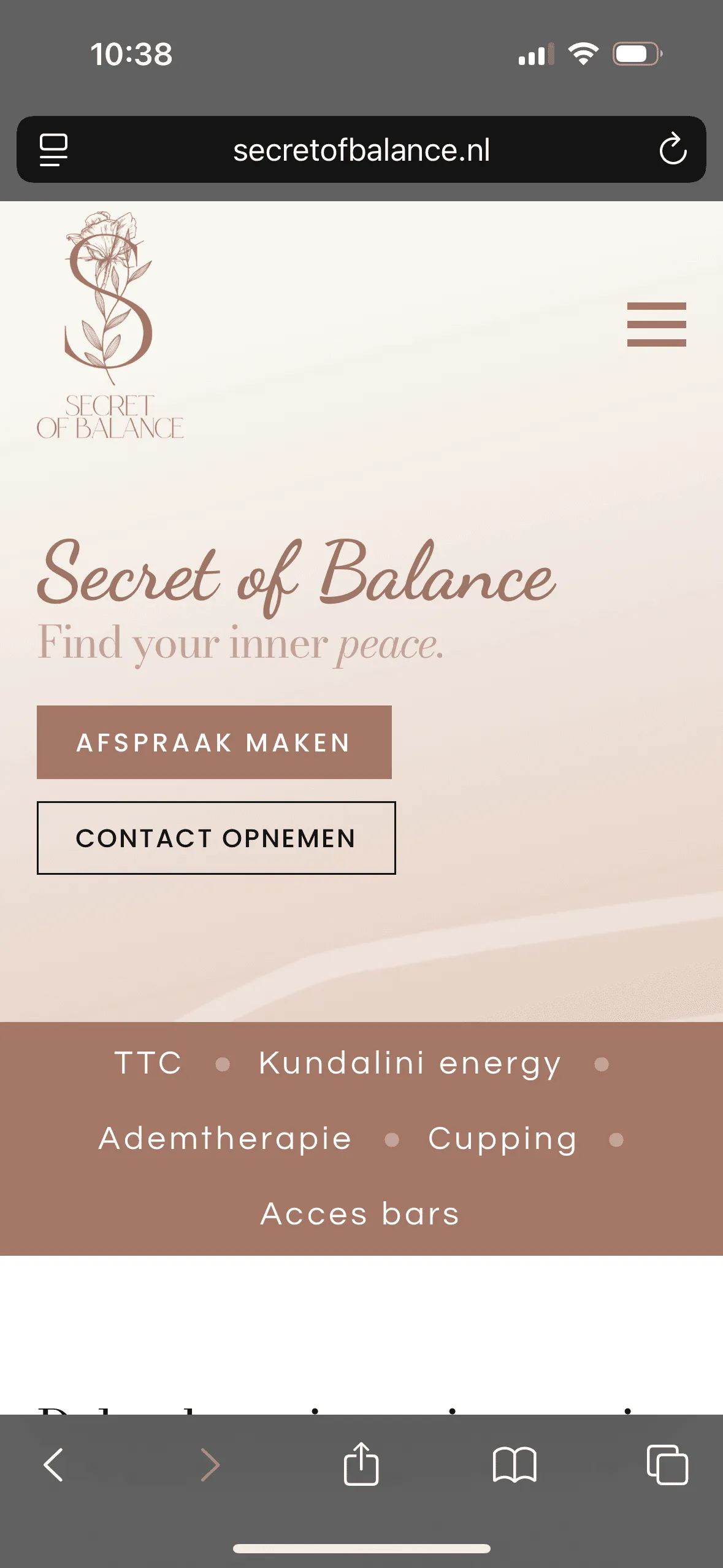 Een digitaal platform dat de visie van Secret of Balance sterk ervaarbaar maakt. Potentiële cliënten raken geïnspireerd, boeken effectief behandelingen en reviews bevestigen de positieve ervaring. De website is voor Naomi een effectief hulpmiddel om haar praktijk en impact professioneel te profileren.