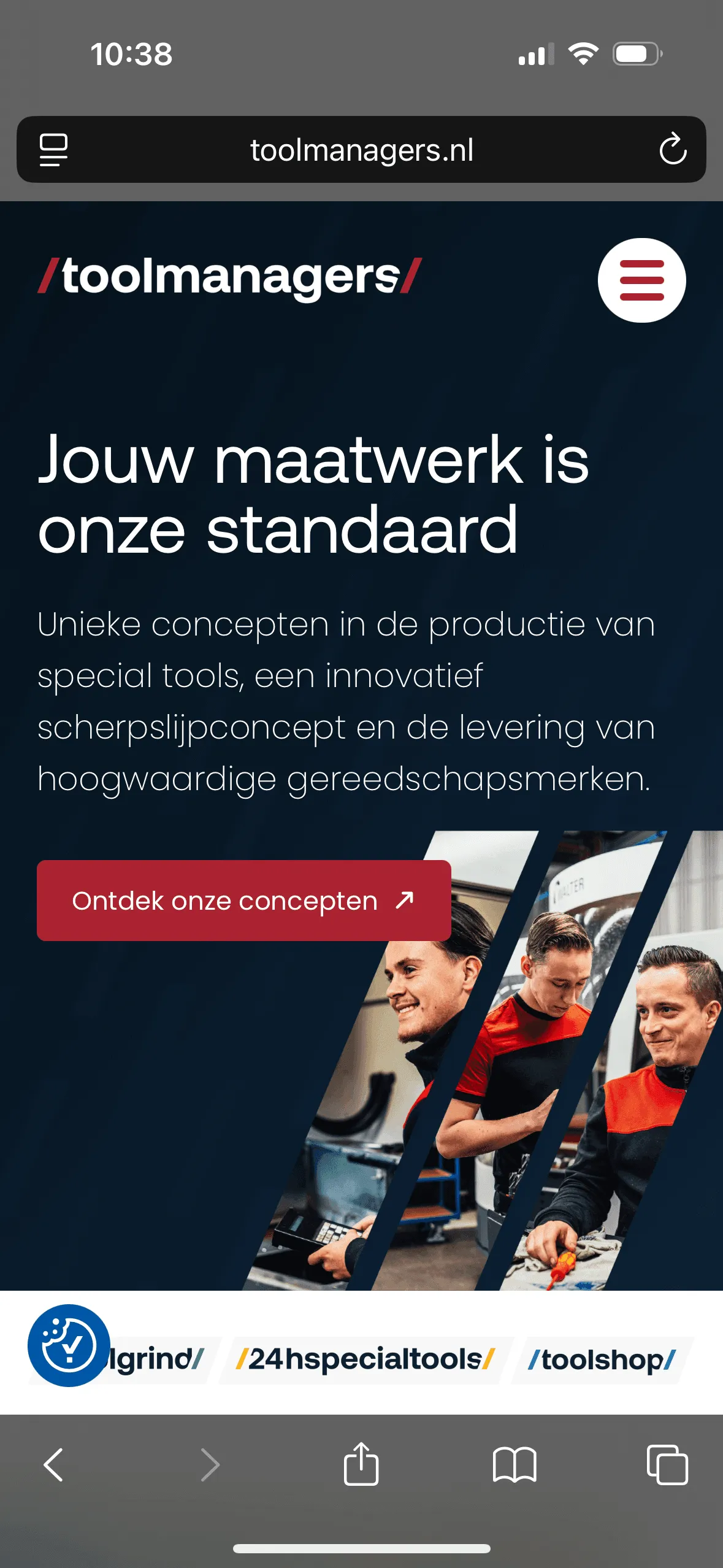 Toolmanagers, een familiebedrijf in de verspanende industrie, had behoefte aan een online presentatie die hun uitgebreide dienstverlening perforering, slijpservice én maatwerk configurator helder, toegankelijk en professioneel toont, en tegelijkertijd de naamsverandering en rebranding ondersteunt.